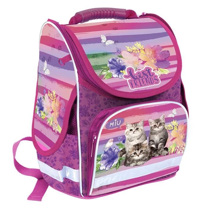Рюкзак шк. ПОЛОСАТЫЕ КОТЯТА 36х26х20 см жестк. каркас 182644