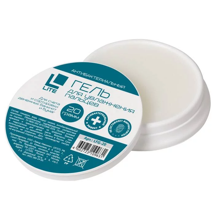 Гель для увлажнения пальцев LITE 20 г, антибактериальный, бесцветный LFG-20