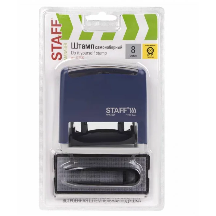 Штамп самонаборный 8-строчный STAFF, оттиск 60х40 мм, "Printer 8027", КАССЫ В КОМПЛЕКТЕ, 237430