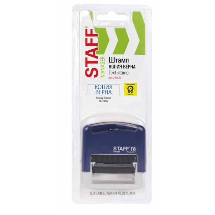 Штамп стандартный STAFF "КОПИЯ ВЕРНА", оттиск 38х14 мм, "Printer 9011T", 237420