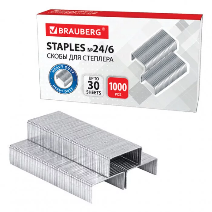 Скобы для степлера BRAUBERG, №24/6, 1000 штук, 220950