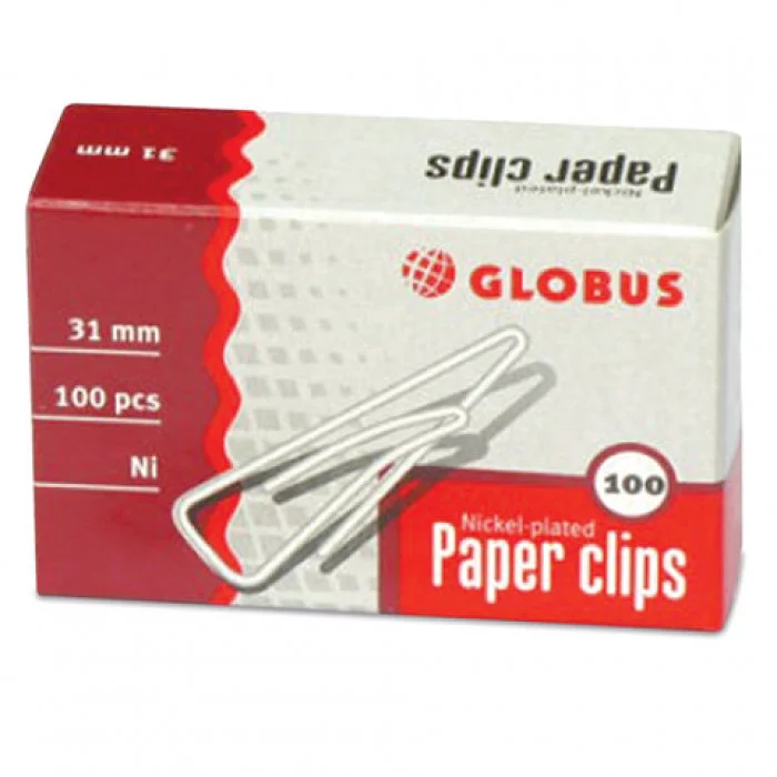 Скрепки Globus 31 мм, никелированные, с загнутым краем, треугольные, 100 шт, в картонной коробке