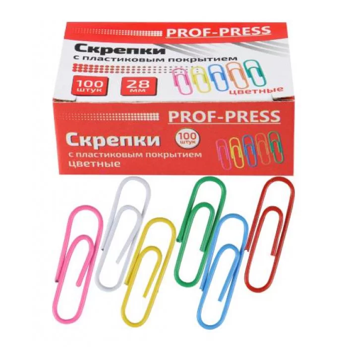 Металлические скрепки c цветным покрытием подойдут для офисных или учебных нужд, а также для ведения домашних дел. Металлические скрепки выполнены в овальной форме. Длина: 28 мм. В 1 картонной коробке 100 штук.