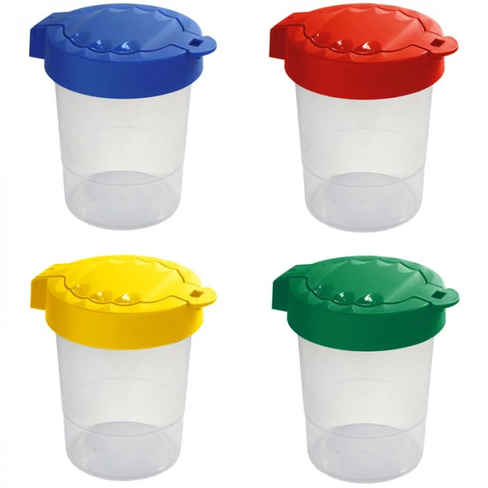 Стакан-непроливайка ГАММА предназначен для промывания кистей в процессе рисования. Плотно прилегающая крышка препятствует выливанию воды на рабочую поверхность. На крышке имеются продольные желобки для кисточек. Специальная линия - метка безопасного уровня воды - указывает на оптимальный уровень наполнения стакана водой. Яркие крышки - ассорти из 4 цветов: красный, жёлтый, зелёный, синий.