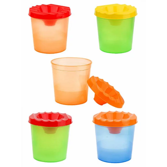 Пластиковый стакан-непроливайка идеально подойдет как школьникам на уроках рисования, так и маленьким художникам дома и в детском саду! Крышка с отверстием в центре имеет желобки для кистей. При заполнении стакана до указанной линии вода не прольется при случайном переворачивании. Пусть время для ребенка проходит полезно и весело.