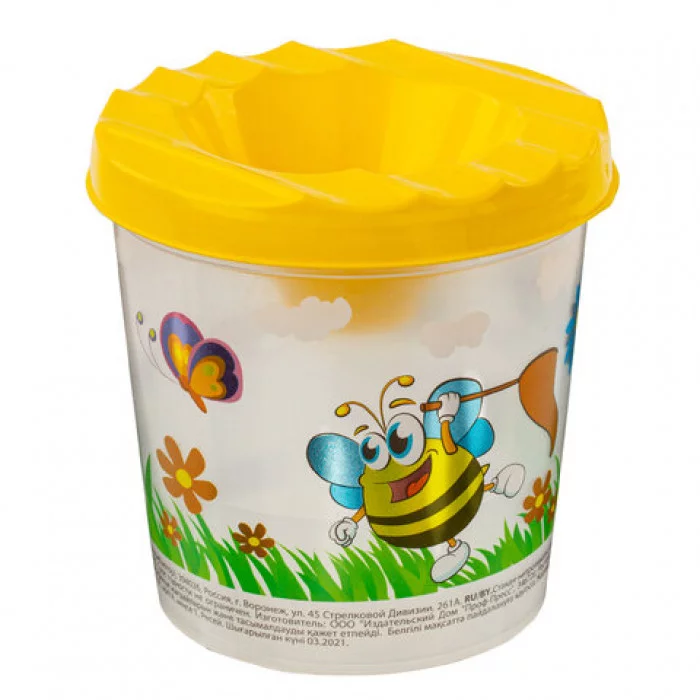 Стакан-непроливайка ЮНЛАНДИЯ предназначен для занятий рисованием красками. Специальная форма крышки стакана исключает возможность вытекания воды. Линия на прозрачном корпусе указывает на максимально возможный уровень наполнения. Выполнен из прочного пластика. Имеются специальные углубления на крышке для размещения кисточек. Полный объем - 210 мл. Объем до уровня - 75 мл. Оригинальный дизайн сделает процесс рисования еще более увлекательным. Количество отделений: 1. Полный объем одного отделения: 250 мл. Объем до уровня одного отделения: 50 мл. Крышка: да. Углубления на крышке для размещения кисточек: да. Серия: ВЕСЕЛЫЙ ШМЕЛЬ. Конструкция стакана не позволяет жидкости разливаться: да. Цвет корпуса: прозрачный. Цвет крышки: желтый. Материал: пластик Бренд - ЮНЛАНДИЯ. Производитель - Россия. Артикул - 191732. Штрихкод - 4606224306377