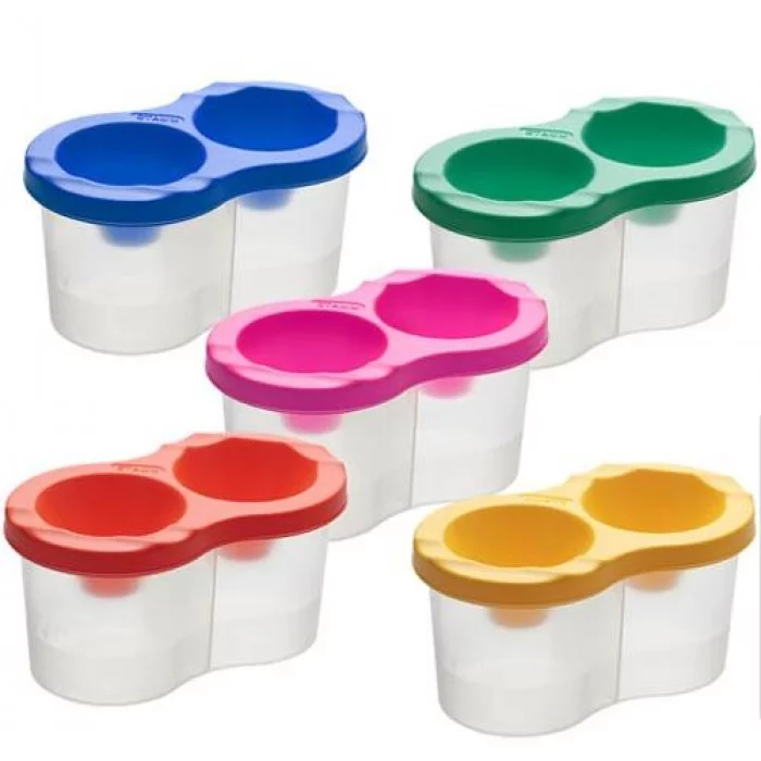 Стакан-непроливайка предназначен для промывания кисточек в процессе рисования. Имеет два отделения. Форма крышек в виде воронки не даст ребенку пролить воду в процессе творчества при опрокидывании. Специальные линии (метки безопасного уровня воды) указывают на оптимальный уровень наполнения стакана водой. На крышках имеются продольные желобки для кисточек. Устойчиво располагается на рабочей поверхности.