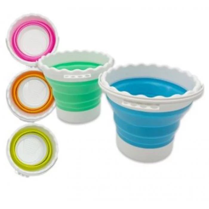 Ведерко для мытья кистей DH-95 пластиковое складное 17см, ребристое дно, с ручкой, с держателем кистей, цвета ассорти 331492