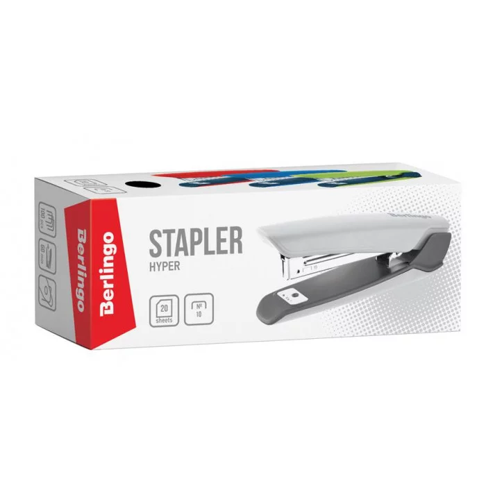 Степлер №10 Berlingo "Hyper" до 20л, 100 скоб, пластиковый корпус, красный 303529