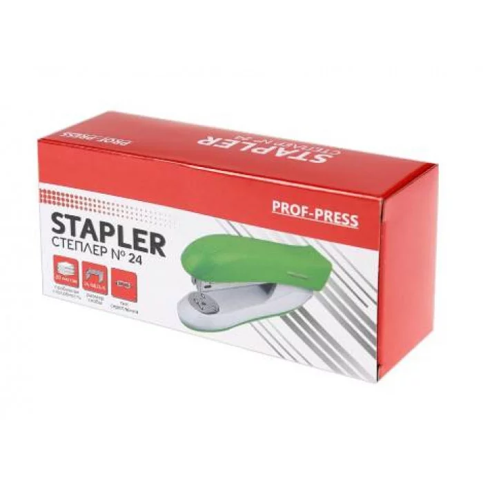 Cтеплер — незаменимый помощник в работе с большим объемом документов. Его рабочий механизм выполнен из металла, а корпус — из ударопрочного пластика. За счет компактного размера он не займет много места на рабочем столе. Размер скоб: №24. Упаковка: картонная коробка.