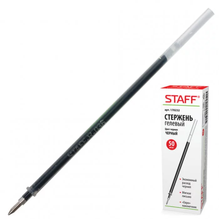Стержень гелевый STAFF "Basic" 1шт GPR-232, 135 мм, ЧЕРНЫЙ, узел 0,5 мм, линия письма 0,35 мм, 170232