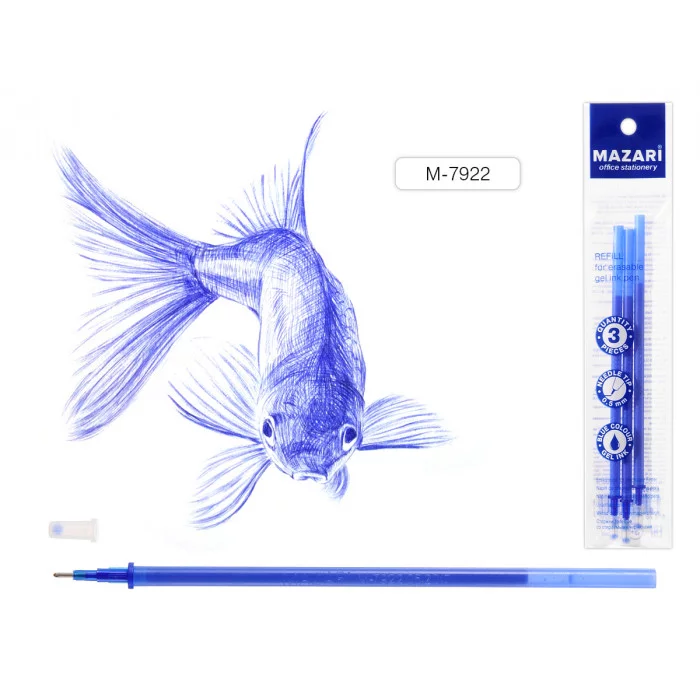 Стержни M-7922 гелевые со стираемыми чернилами,СИНИЕ,3 шт,игольч. пиш.узел 0.5 мм,длина 126 мм