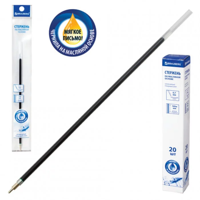 Стержень шариковый масляный BRAUBERG, 140 мм, ЗЕЛЕНЫЙ, игольчатый узел 0, 7 мм, линия письма 0, 35 мм, 170290