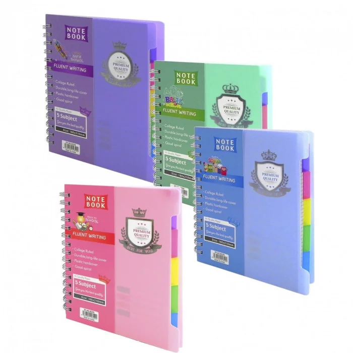 Тетрадь 120л., А5, клетка, Alingar "Best for you", гребень, пластиковая обложка, цветные пластиковые разделители, ассорти 4 цвета