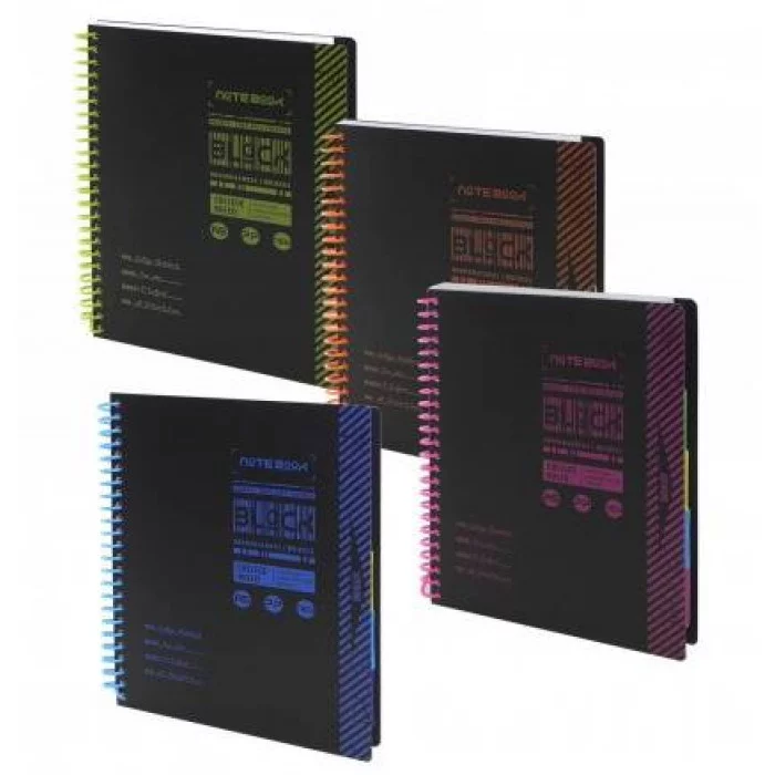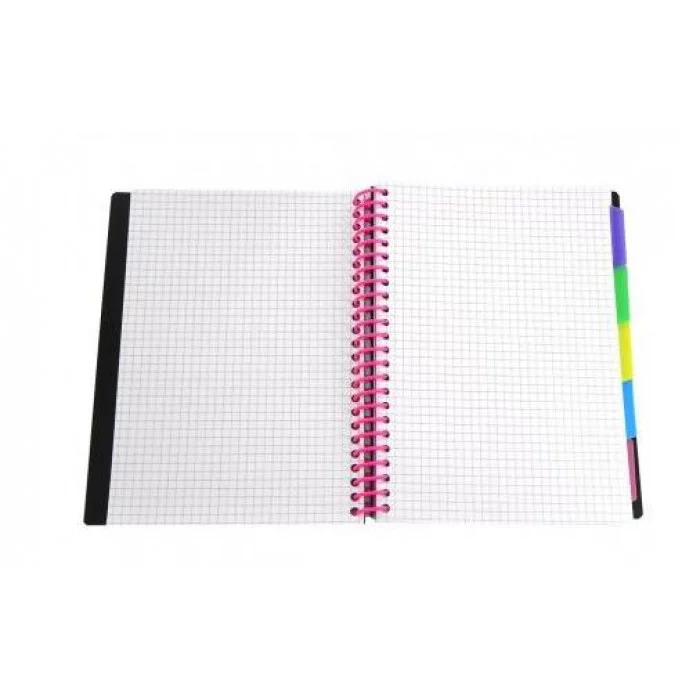 Тетрадь 120л., А5, клетка, Alingar "Colledge ruled", цветная спираль, чёрная пластиковая обложка, цветные пластиковые разделители, ассорти AL10566