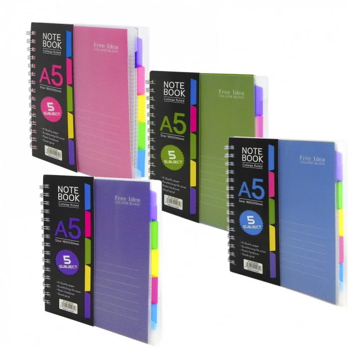 Тетрадь 120л., А5, клетка, Alingar "Free Idea", гребень, пластиковая обложка, цветные пластиковые разделители цвет ассорти AL10564