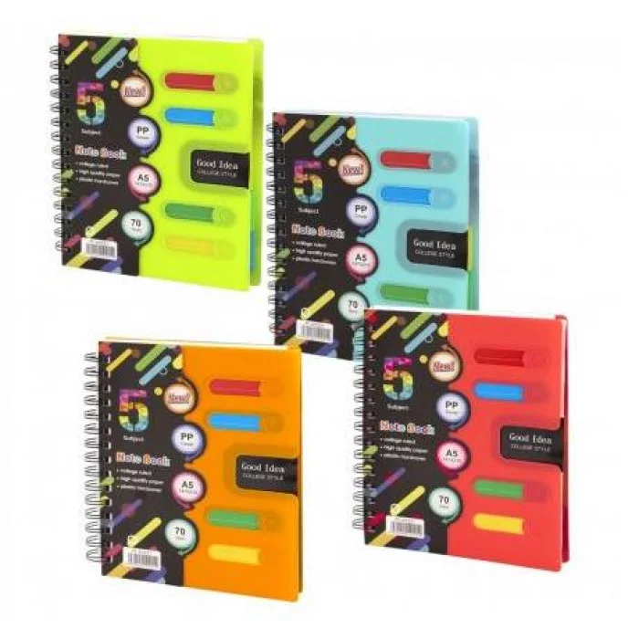 Тетрадь 120л., А5, клетка, Alingar "Good Idea", гребень, пластиковая обложка с информ окном, цветные пластиковые разделители, ассорти