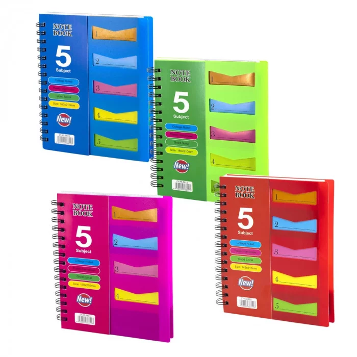 Тетрадь 120л., А5, клетка, Alingar, гребень, пластиковая обложка с инф. окнами, цветные пластиковые разделители, ассорти 4 цвета AL6016