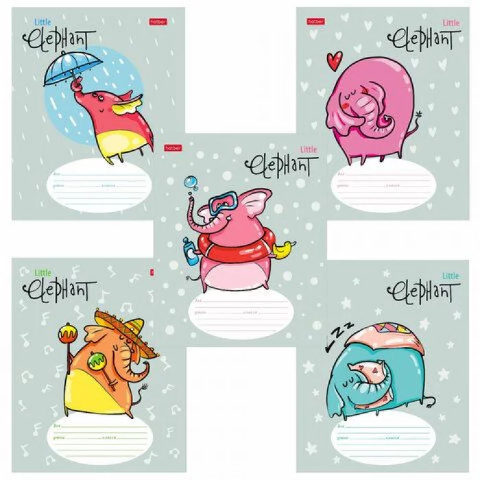 Тетрадь 12л А5ф ЛИНИЯ 65г/кв.м на скобе 5 диз.в блоке скругл.углы серия -Little Elephant- ТЛ1343