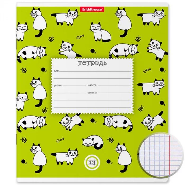 Тетрадь 12л клетка мелов "Cats" зеленый ERICH KRAUSE 46530 022799