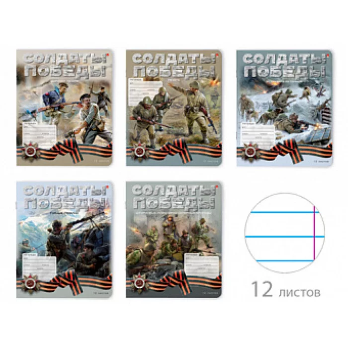 ТЕТРАДЬ 12Л. ЛИН. "СОЛДАТЫ ПОБЕДЫ" 5 ВИДОВ ТЛ1377