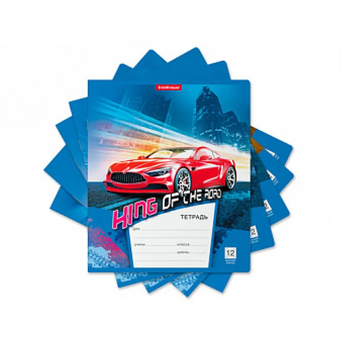 Тетрадь школьная ученическая ErichKrause® Автосияние, 12 листов, крупная клетка (в плёнке по 10 шт.) 46628