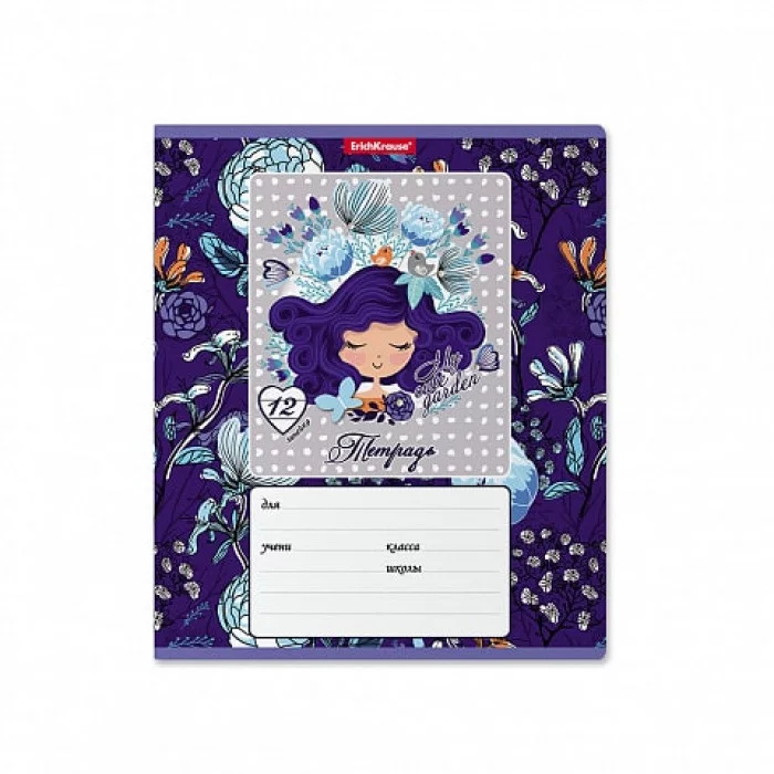 Тетрадь 12л., линия, Erich Krause скрепка, блок офсет, мелован. картон "Bluecurl"