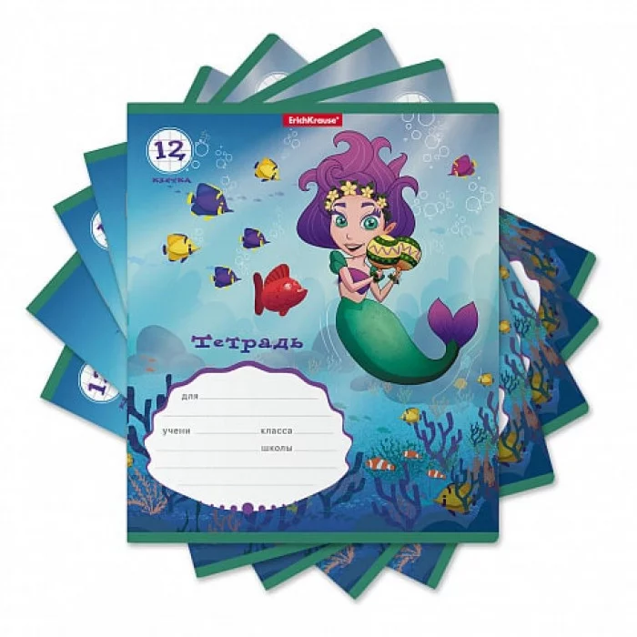 Тетрадь школьная ученическая ErichKrause® Русалочка, 12 листов, клетка 54185
