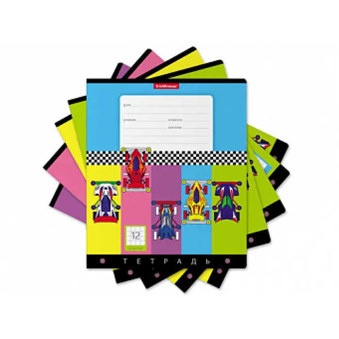 Тетрадь школьная ученическая ErichKrause® Веселые гонки, 12 листов, клетка 48838