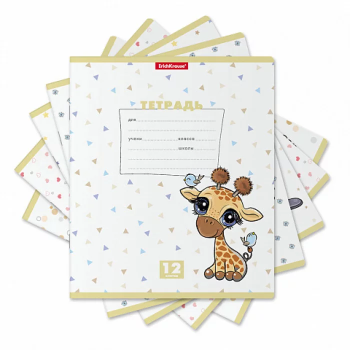 Тетрадь школьная ученическая ErichKrause® Веселые зверята, 12 листов, клетка MIX-PACK 54189