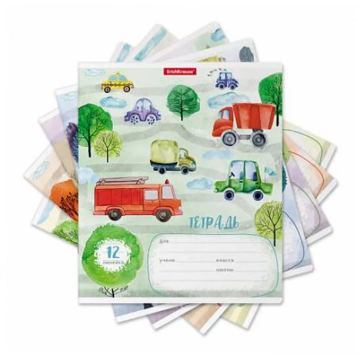 Тетрадь школьная ученическая ErichKrause Автопарк 12 листов клетка 51413