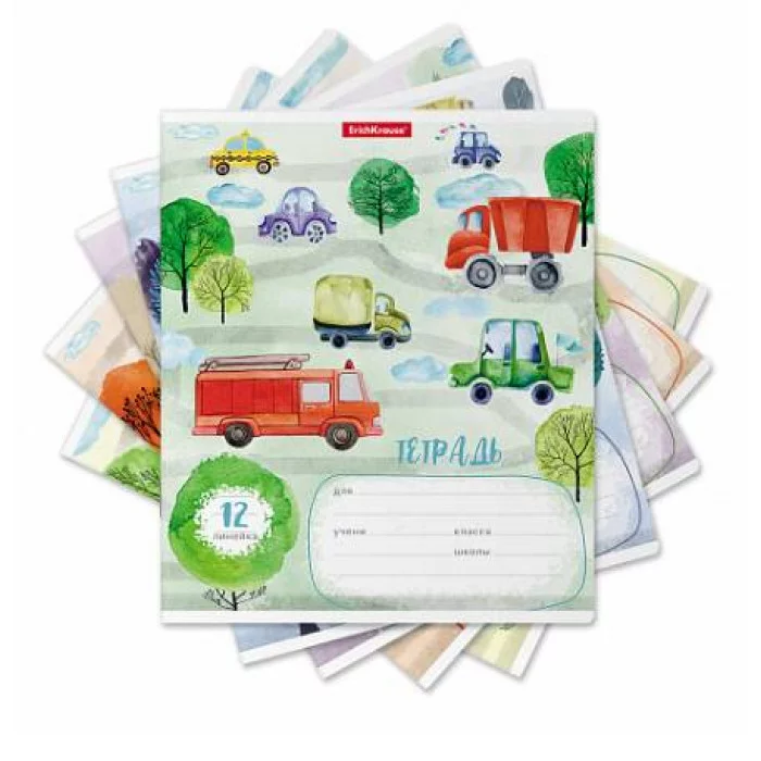 Тетрадь школьная ученическая ErichKrause Автопарк 12 листов линейка 51414