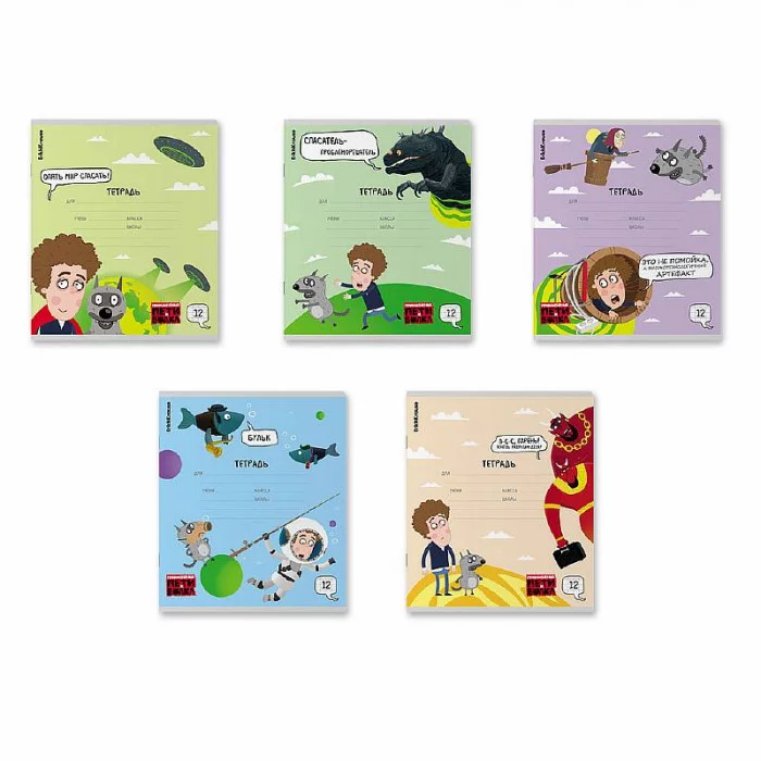 Тетрадь школьная ученическая ErichKrause Приключения Пети и Волка, 12 листов, клетка _MIX-PACK 61461