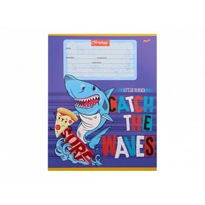 TM"Profit" Тетрадь КЛЕТКА 12л. АКУЛА-СЁРФЕР (12-4360) цвет. мелов.обл. .5 диз в сп-ке ТК1559