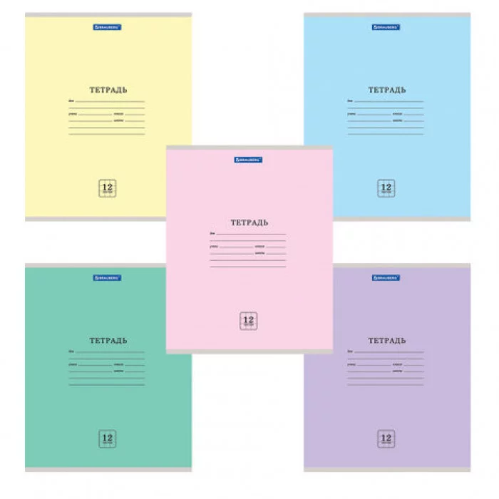 Тетрадь 12 л. BRAUBERG "ЭКО", клетка, обложка плотная мелованная бумага, АССОРТИ (5 видов), 105670