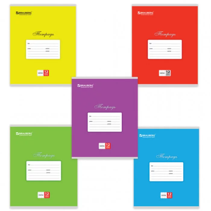 Тетрадь 12 л. BRAUBERG КЛАССИКА, клетка, обложка картон, АССОРТИ (5 видов), 103273