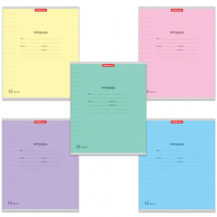 Тетрадь школьная ученическая формата А5+ (170х203 мм). Обложка из высококачественного мелованного картона плотностью 180 г/м2. В блоке 12 листов в линейку с полями. Бумага офсетная плотностью 60 г/м2. Цвет линовки - синий. Скругленные уголки обложки и блока. Тип скрепления - скоба. Тетради одного цвета упакованы в термоусадочную пленку по 10 штук. Товар поставляется в нескольких вариантах цвета без возможности выбора.