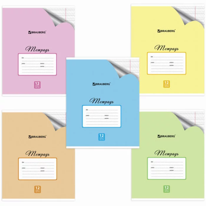 Тетрадь 12л. BRAUBERG ЭКО частая косая лин., обл. офсет, вн. блок офсет, Пастельная с уголком, 104509