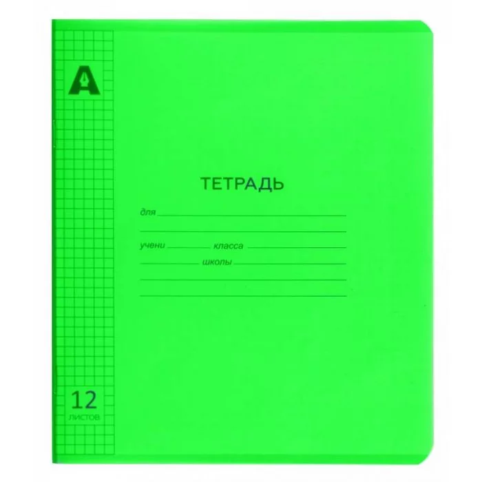 Тетрадь 12л., клетка, обложка цветной пластик, Alingar, скрепка, блок офсет, 100% белизна, скругленные углы,"Neon Зелёный" AL12426