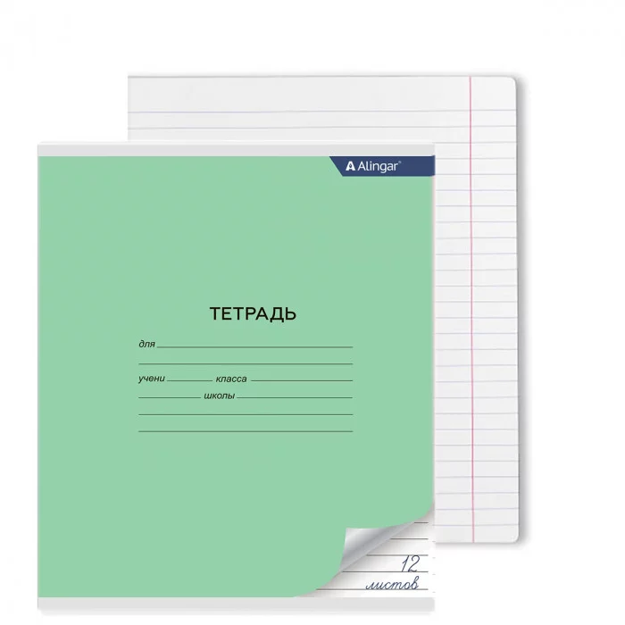 Тетрадь 12л., линия, Alingar, скрепка, блок офсет, 100% белизна, мелованный картон (стандарт), "Зеленая"