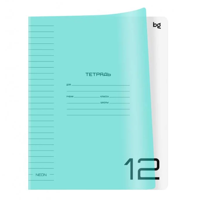 Тетрадь 12л., линия BG "UniTone. Neon", пластиковая обложка, неон голубой 379118