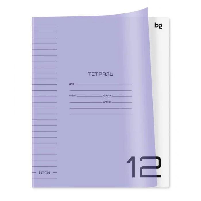 Тетрадь 12л., линия BG "UniTone. Neon", пластиковая обложка, неон сиреневый 379119
