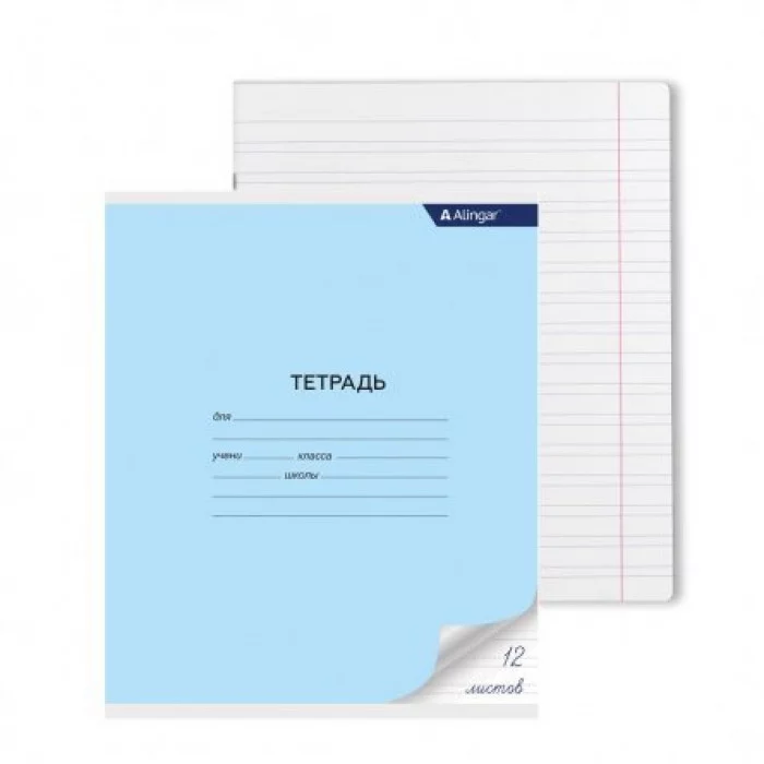 Тетрадь 12л., узкая линия, Alingar, скрепка, блок офсет, мелованный картон, "Голубая" AL7224