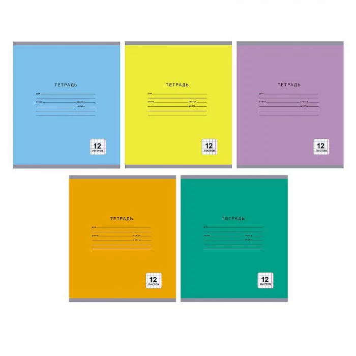 Тетрадь А5 12л "Однотонная серия (клетка) 12л., 5 видов" КанцЭксмо ТК124996