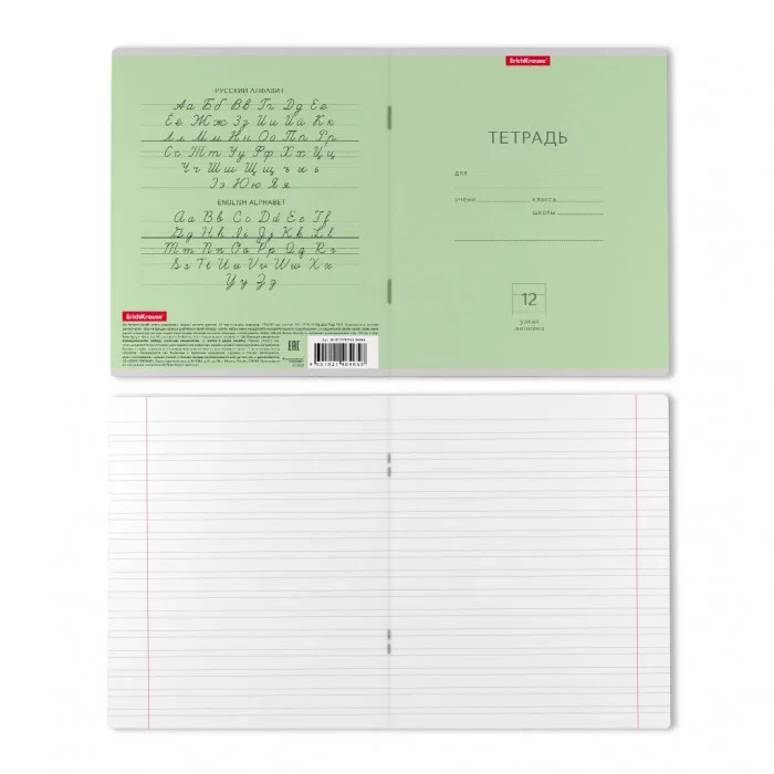 Тетрадь школьная ученическая ErichKrause Классика зеленая, 12 листов, узкая линейка 46465