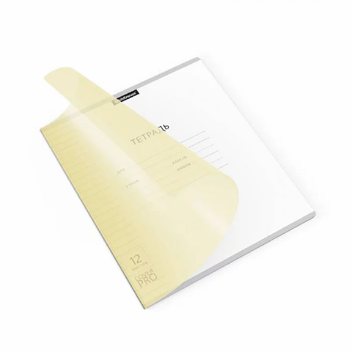 Тетрадь школьная ученическая с пластиковой обложкой на скобе ErichKrause Классика CoverPrо Pastel, желтый, А5+, 12 листов, линейка 56341