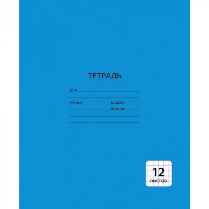 Тетради А5 12л. Скрепка. Клетка. Обл.: мел. картон. Бум. оф.60 г/м2. Уп./гофр. Однотонная синяя (клетка), 1 вид