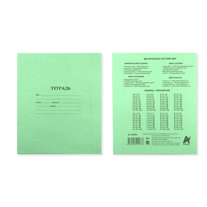 Тетрадь в клетку, собственного производства из качественного сырья.Зеленая обложка утетрадей, подходит для контрольных исамостоятельных работ, атакже для черновика.