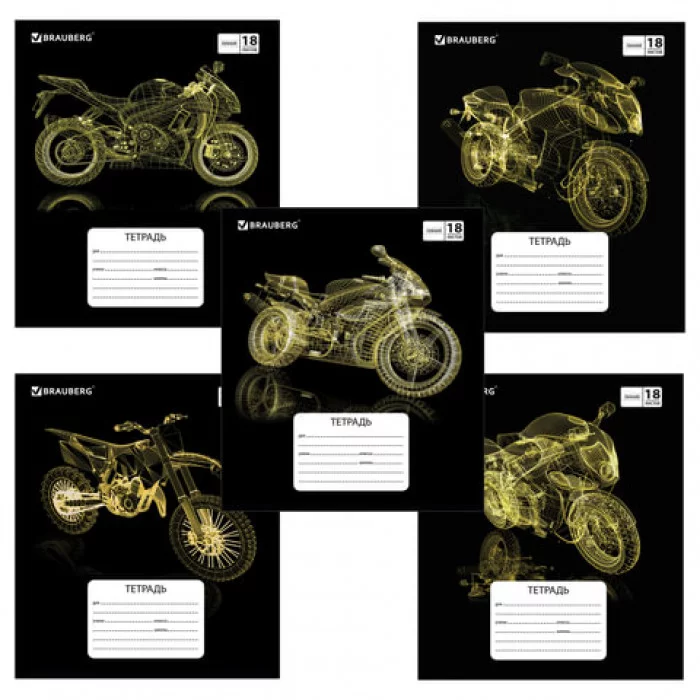 Тетрадь 18 л. BRAUBERG, линия, обложка картон, 3D-MOTORBIKE, 402997