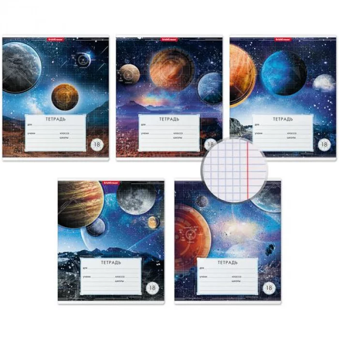 Тетрадь 18л клетка мелов "Космос" ассорти (5диз) ERICH KRAUSE 49201 022948